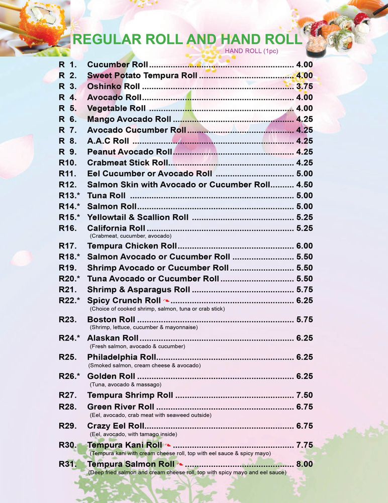 Shrimp tempura, eel avocado, spicy crunch salmon.