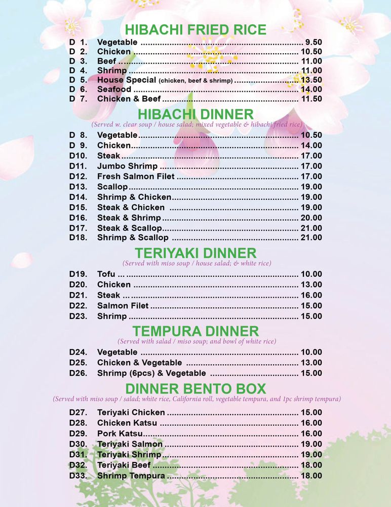 Hibachi Steak,Chicken and Shrimp with mix vegetables and fried rice. Serve with clear soup and green salad