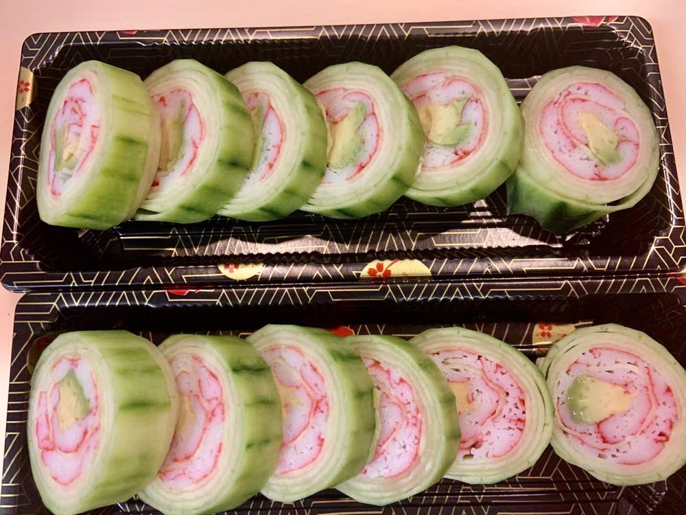 Avocado, crabsticks, cucumber, masago, and house special dressing.